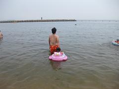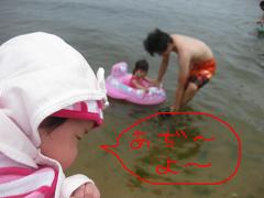 ママは水着を着ていなくて深いところには行けなかったので