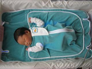 おむつ1枚で目隠しをして上から光を当てます